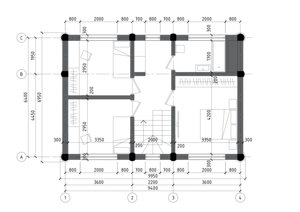 Wspólnie decydujemy o układzie pomieszczeń, ilości pokoi, sypialni i łazienek.