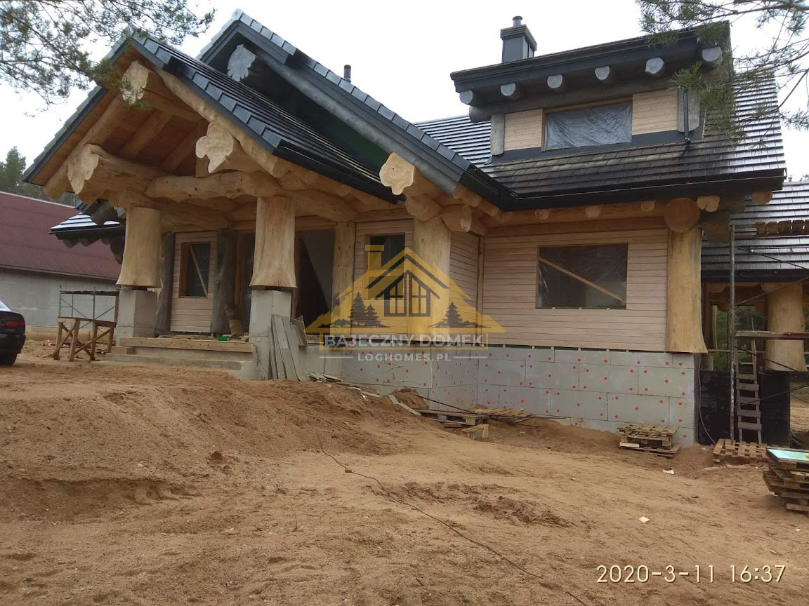 Wybudowany dom z drewna 140×190 mm w komplecie » Lux «wg projektu» Projekt 1 » Warszawska 49, 05-090 Dawidy